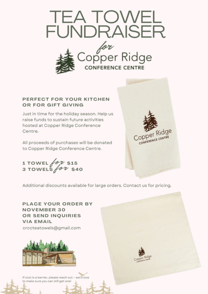 Just in time for the holiday season. Help us raise funds to sustain future activities hosted at Copper Ridge Conference Centre. All proceeds of purchases will be donated to CRCC.